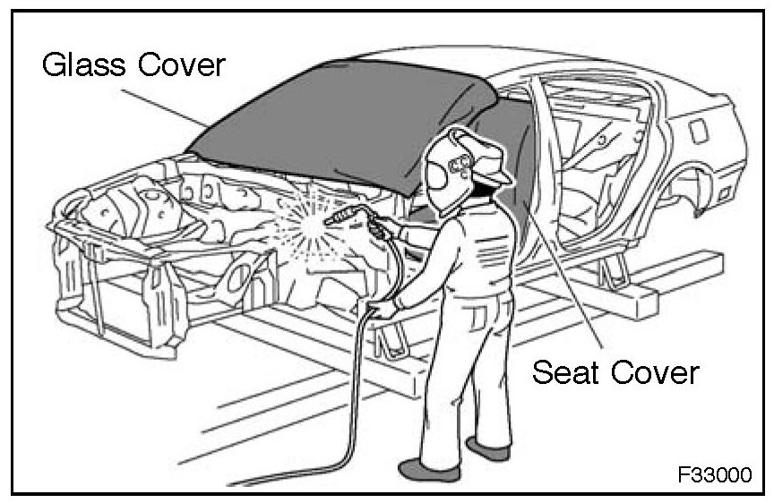 1. When welding, cover glass, seats, carpets, etc. with heat resistant fireproof covers to protect them.