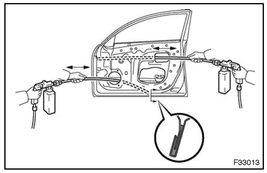 For water-proofing and anti-rust measures, always apply the body sealer to the body panel seams and hems of the doors, hood, etc.