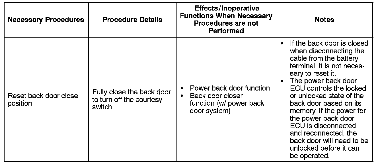 5. PROCEDURES NECESSARY WHEN BATTERY TERMINAL IS DISCONNECTED/RECONNECTED