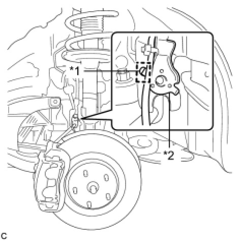* A bolt tightens the brake flexible hose and front speed sensor together. Make sure that the flexible hose is positioned over the front speed sensor.