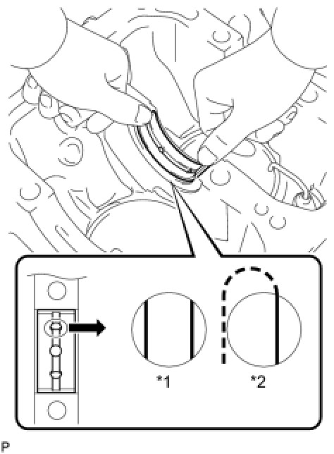 * Both sides of the oil groove in the cylinder block should be visible through the oil feed holes in the bearing. The amount visible on each side of the holes should be equal.