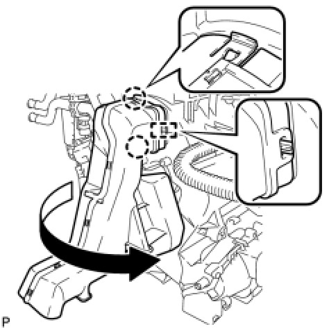 (a) Disengage the 2 claws and guide, and remove the No. 3 air duct sub-assembly as shown in the illustration.