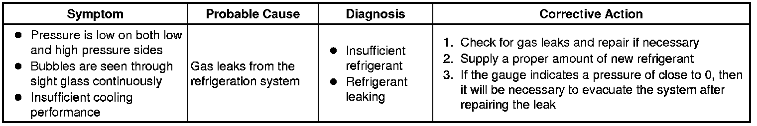 (6) Refrigerant is overcharged or cooling effectiveness of condenser is insufficient.