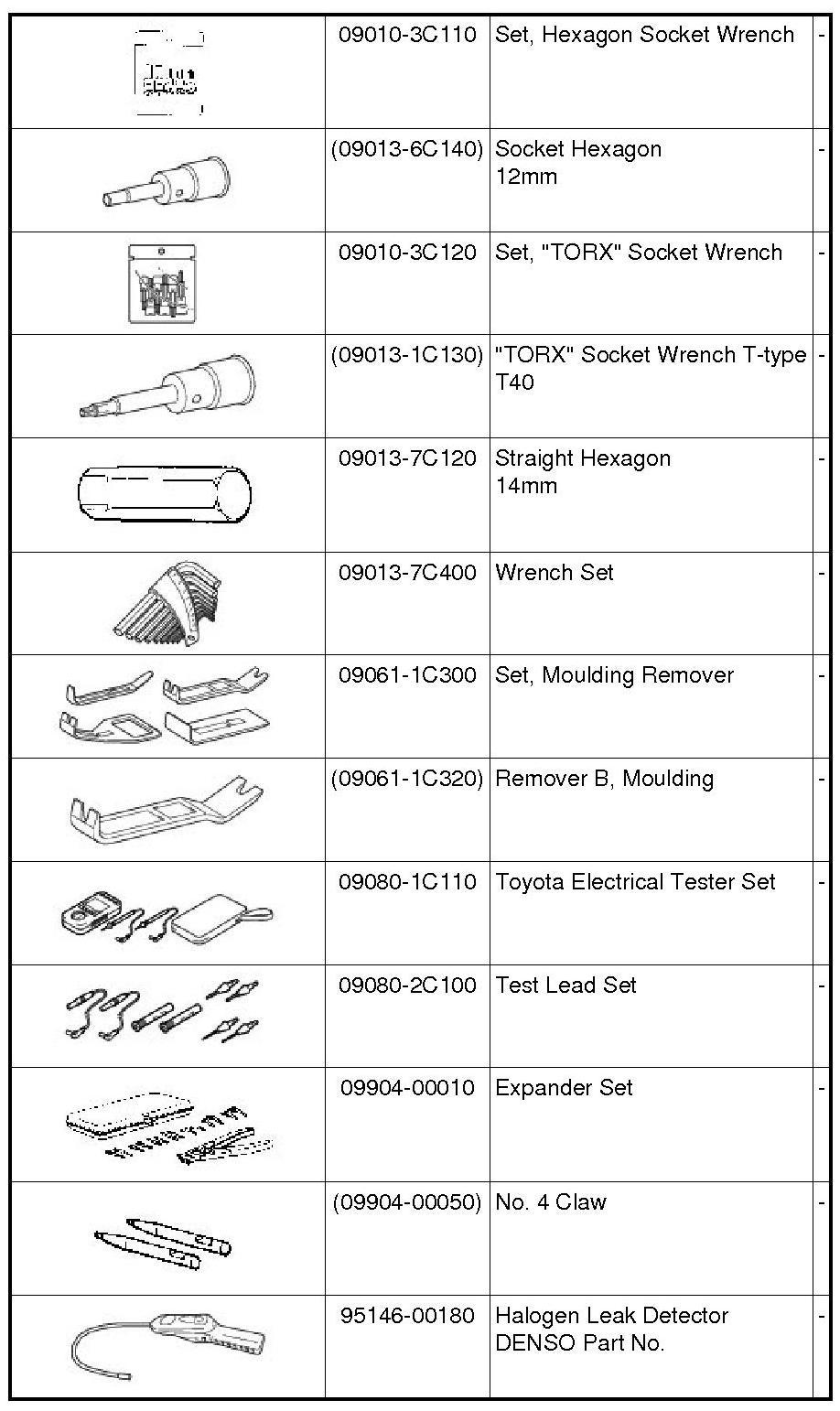 PREPARATION: HEATING / AIR CONDITIONING: RECOMMENDED TOOLS
