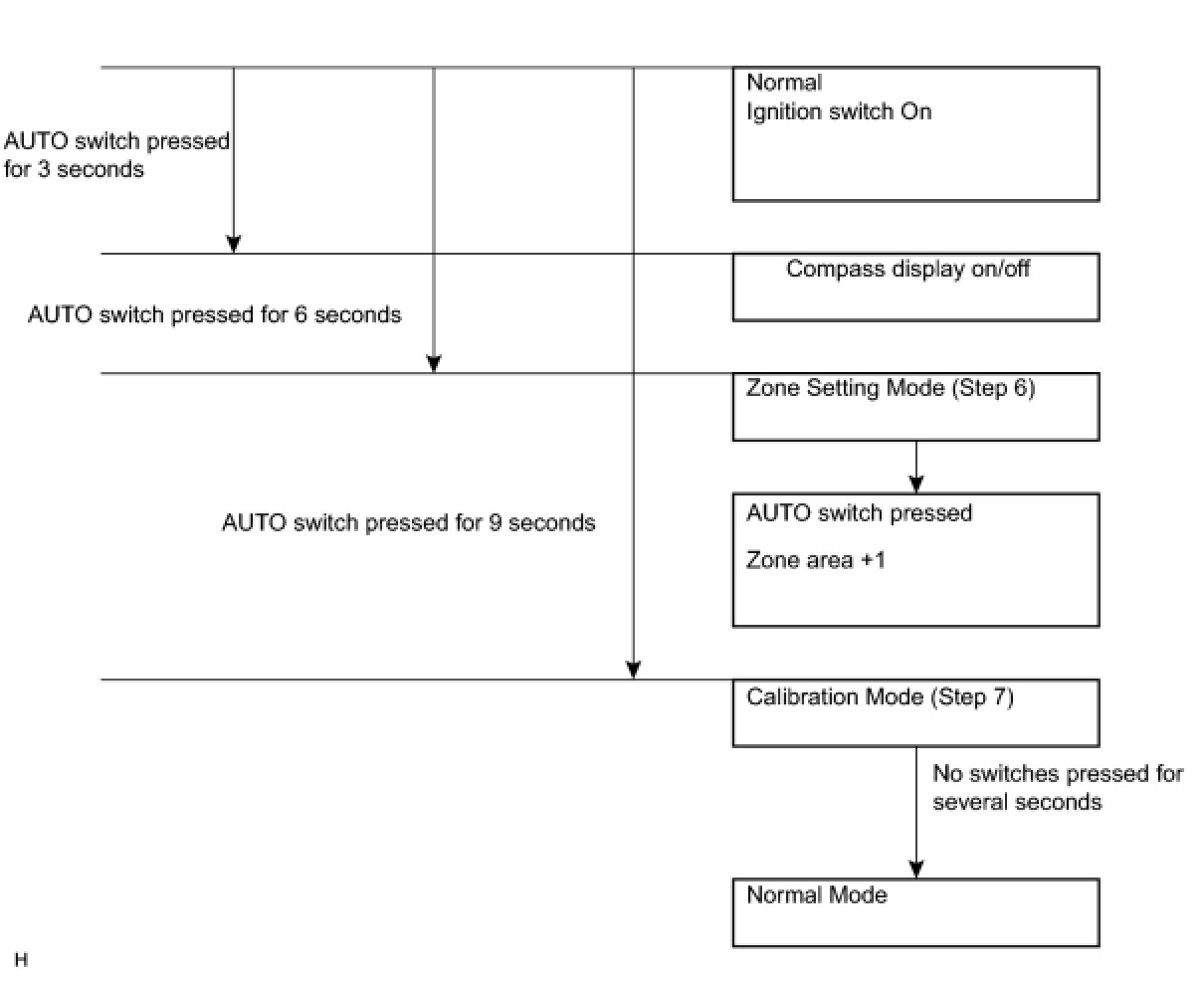 (a) When the compass is in normal mode, pressing the AUTO switch for 9 seconds will activate the calibration mode.