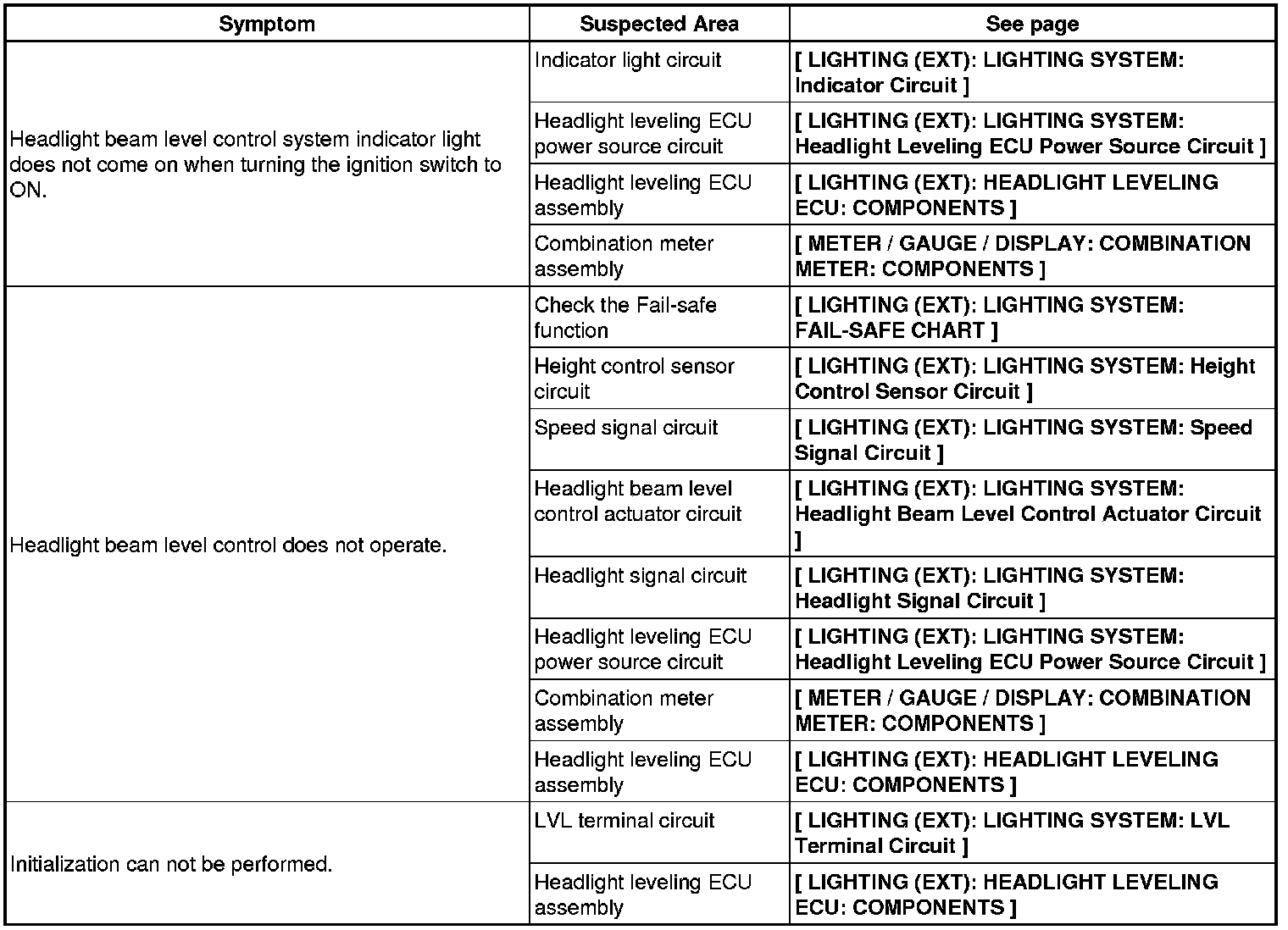 LIGHTING (EXT): LIGHTING SYSTEM: PROBLEM SYMPTOMS TABLE