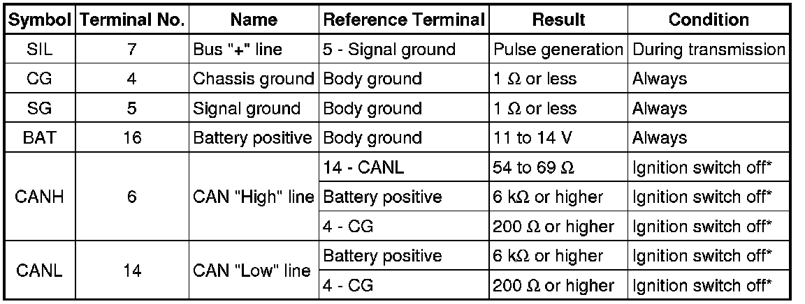 *: Before measuring the resistance, leave the vehicle as is for at least 1 minute and do not operate the ignition switch, any other switches or the doors.
