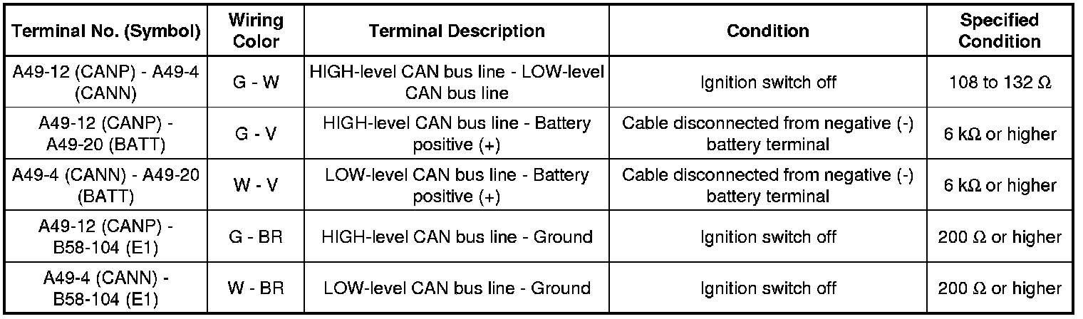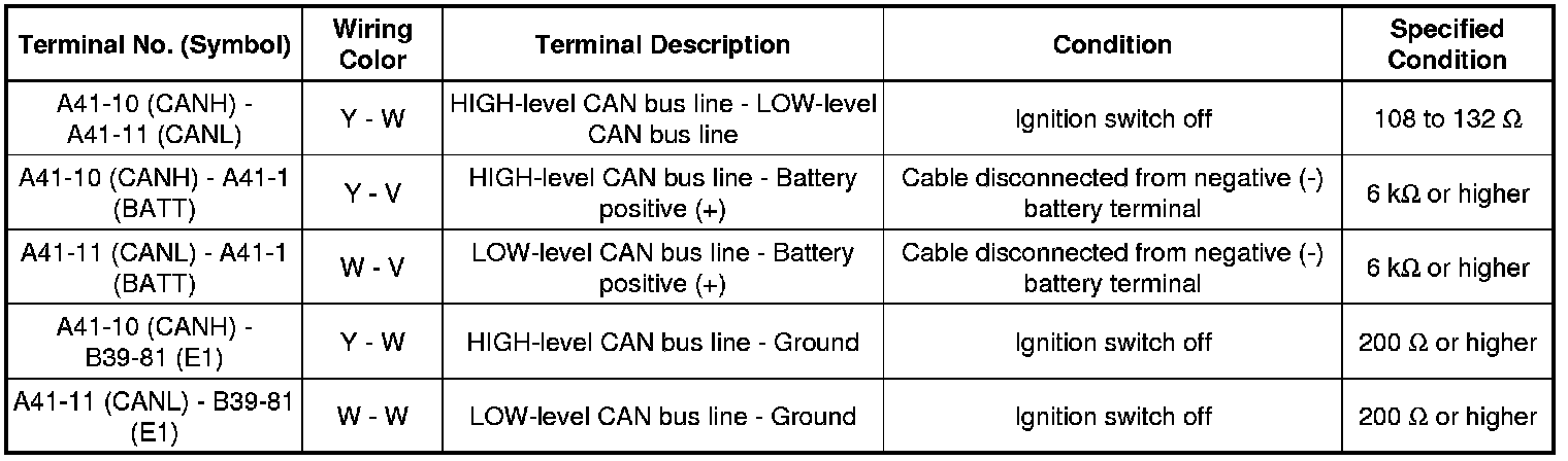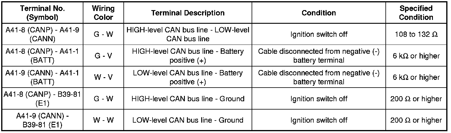 * Turn the ignition switch off before measuring the resistances between CAN bus main wires and between CAN bus branch wires.