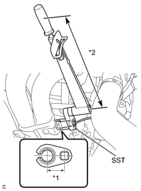 * The "with SST" torque value is effective when using a torque wrench with a fulcrum length of 300 mm (11.81 in.) Service Precautions.