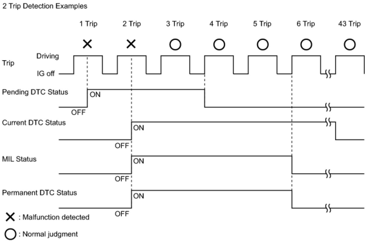 * If a malfunction is detected during the current driving cycle, current and permanent DTCs are stored.