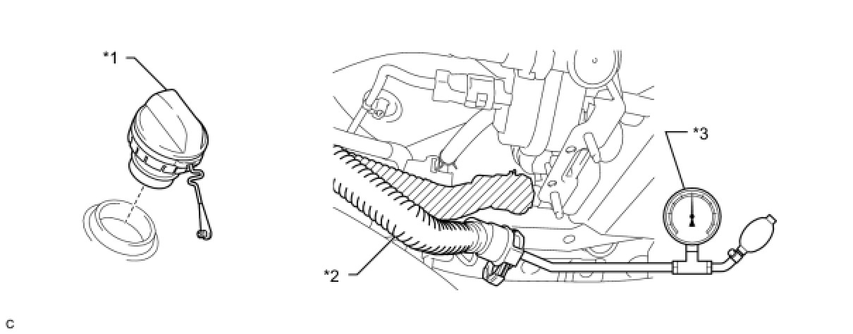 (e) Remove the fuel tank cap, and check that the pressure drops.