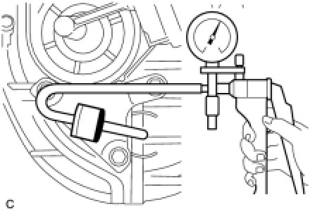 (d) Using a vacuum pump, apply a vacuum of 60 kPa (450 mmHg, 17.7 in.Hg) or higher to the vacuum tank. Wait for 1 minute and check that the needle of the vacuum pump does not lower.