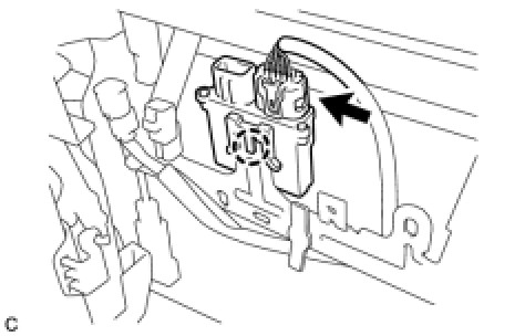 * When installing the occupant classification ECU, be careful that the SRS wiring does not interfere with or is pinched between other parts.