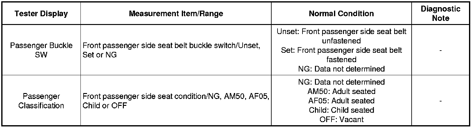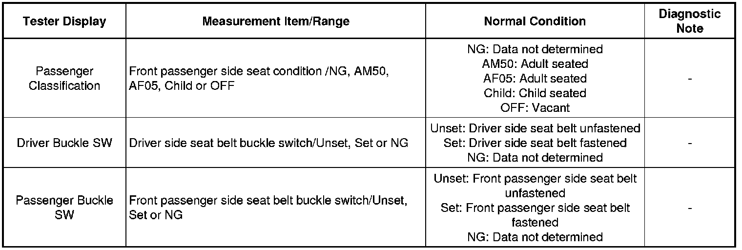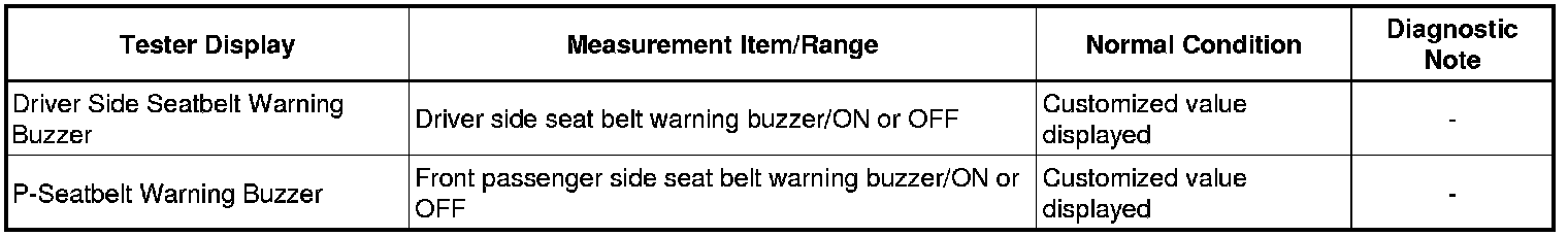 SEAT BELT: SEAT BELT WARNING SYSTEM: DATA LIST / ACTIVE TEST