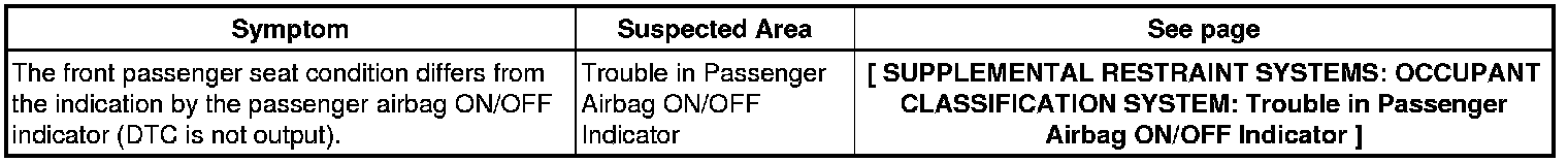SUPPLEMENTAL RESTRAINT SYSTEMS: OCCUPANT CLASSIFICATION SYSTEM: PROBLEM SYMPTOMS TABLE