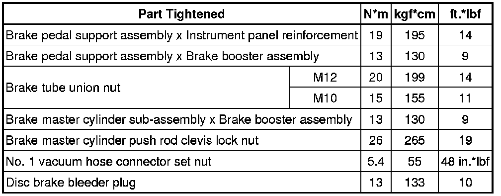 SPECIFICATIONS: BRAKE SYSTEM (OTHER): TORQUE SPECIFICATIONS
