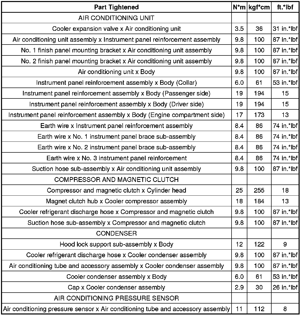 SPECIFICATIONS: HEATING / AIR CONDITIONING: TORQUE SPECIFICATIONS