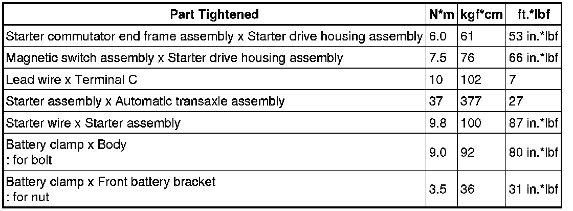 SPECIFICATIONS: 1AR-FE STARTING: TORQUE SPECIFICATIONS
