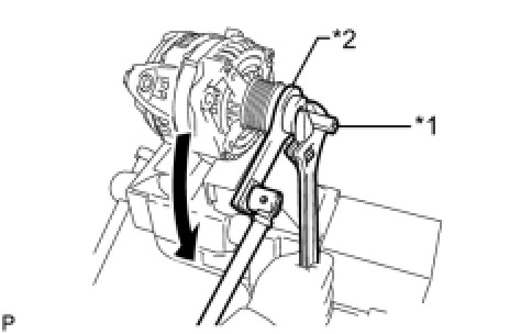 (c) Use a wrench to hold SST (A), and turn SST (B) counterclockwise to loosen the generator pulley.