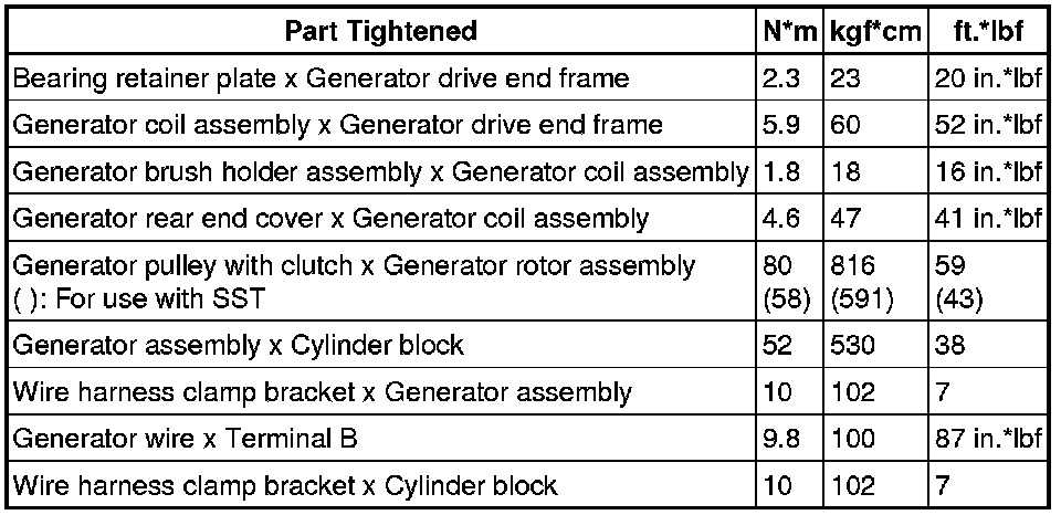 SPECIFICATIONS: 1AR-FE BATTERY / CHARGING: TORQUE SPECIFICATIONS