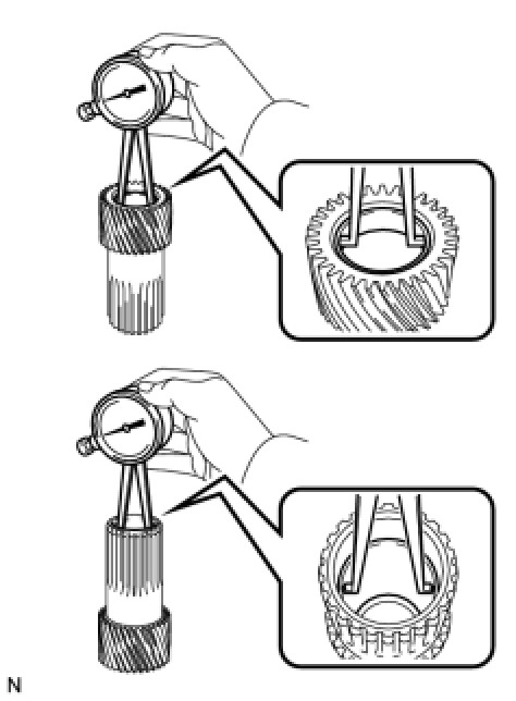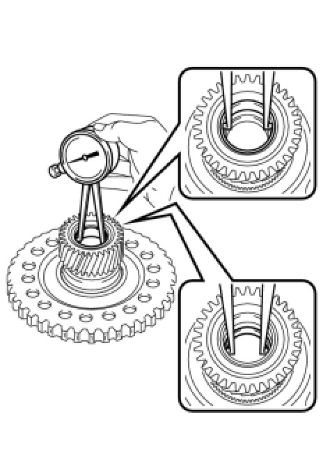 (a) Using a dial indicator, measure the inside diameter of the bushings of the planetary sun gear.