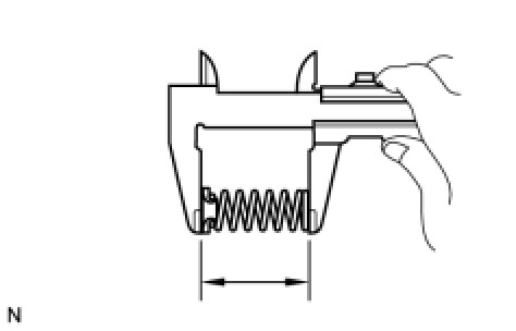(a) Using a vernier caliper, measure the free length of the 1st and reverse brake return spring together with the spring seat.