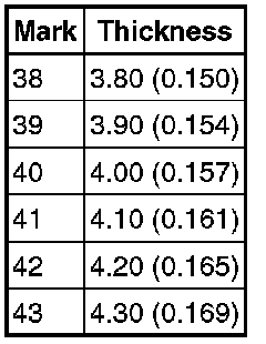 0.601 to 0.819 mm (0.0237 to 0.0322 in.)