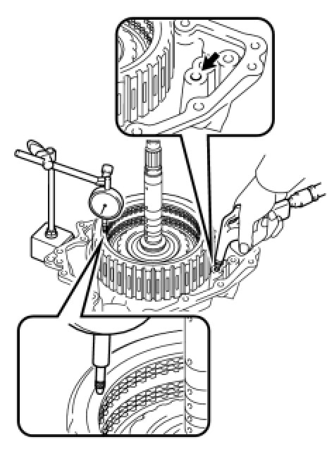 If the clearance is greater than the standard clearance, replace the automatic transaxle assembly.