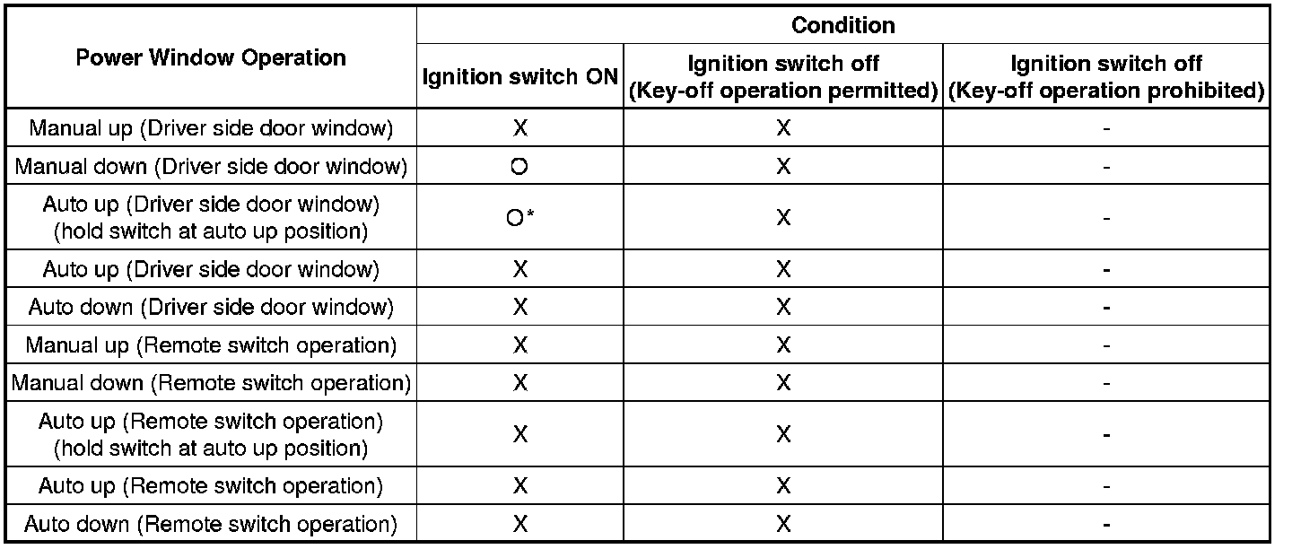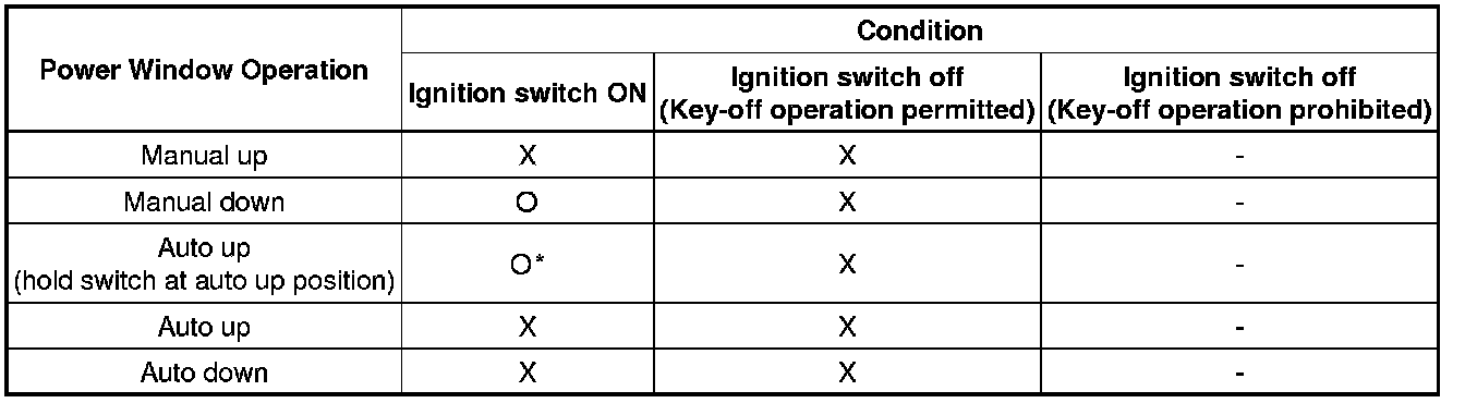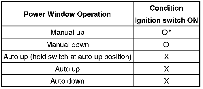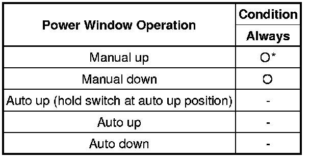* *: Jam protection can operate and window reverses upon reaching the fully closed position.