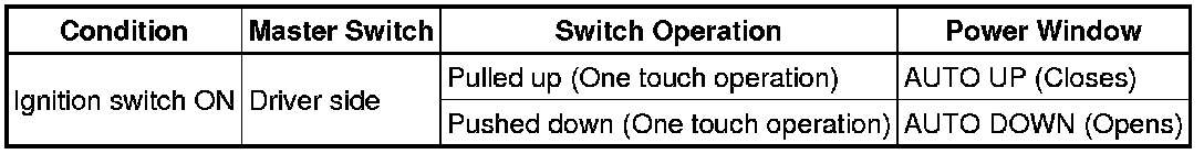 (a) Check that the front passenger side window and rear power windows operate as follows: