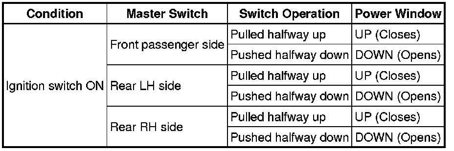 (b) Check that the front passenger side window and rear power windows operate as follows: