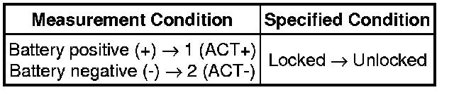 (2) Apply the battery voltage and check the operation of the back door lock motor.
