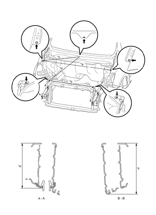 2. Temporarily install the new parts and measure each part of the new parts in accordance with the body dimension diagram. (See the body dimensions)