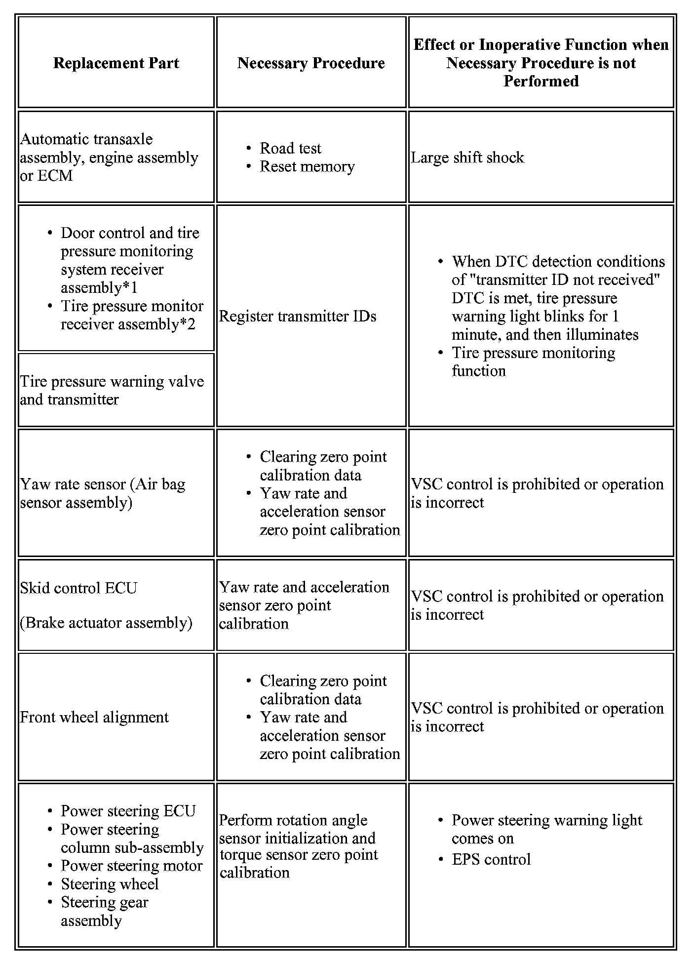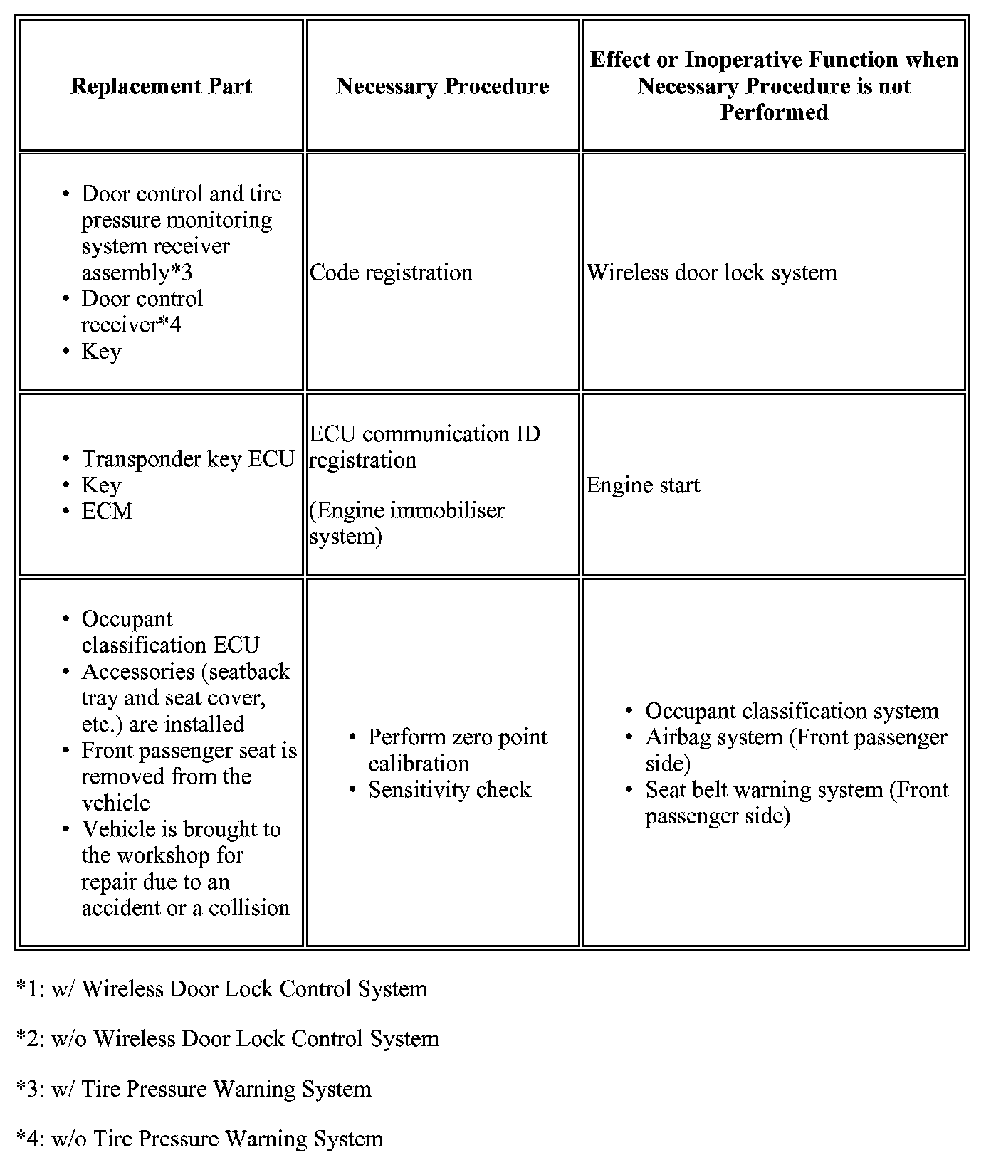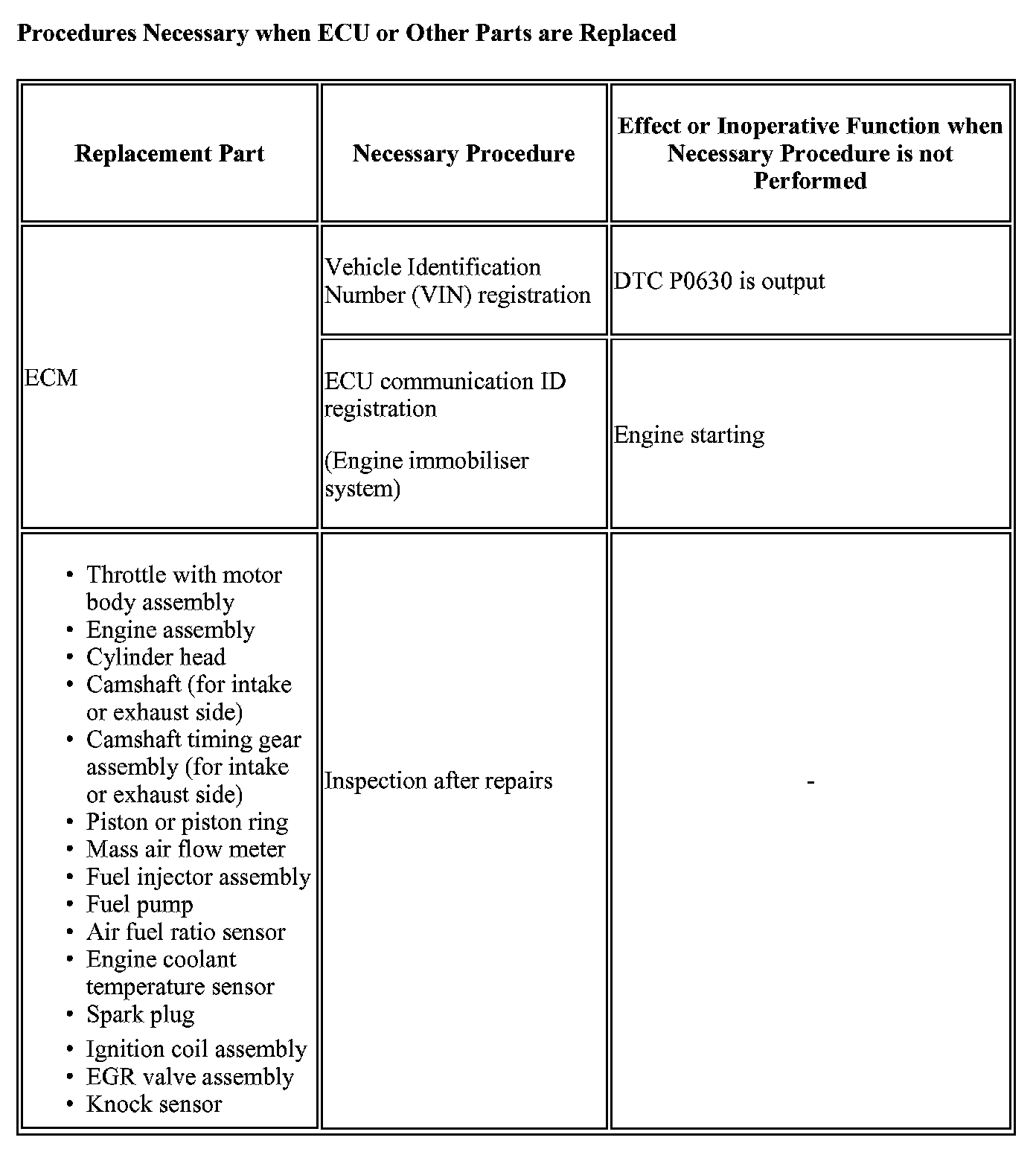 PROCEDURES NECESSARY WHEN ECU OR OTHER PARTS ARE REPLACED