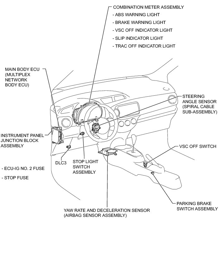 BRAKE CONTROL / DYNAMIC CONTROL SYSTEMS: VEHICLE STABILITY CONTROL SYSTEM (for Hatchback with Built-in Type Yaw Rate Sensor): PARTS LOCATION
