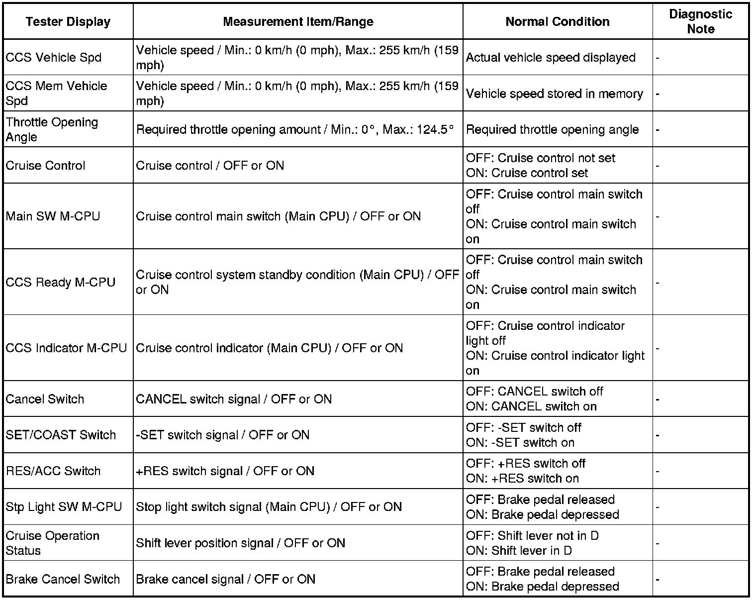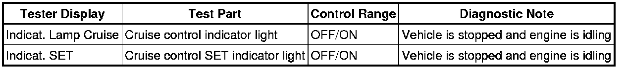 CRUISE CONTROL: CRUISE CONTROL SYSTEM (for Hatchback): DATA LIST / ACTIVE TEST