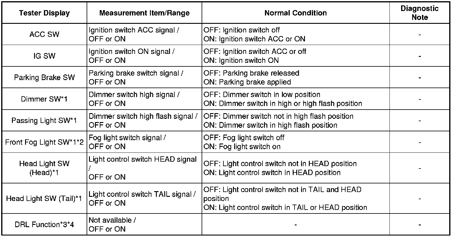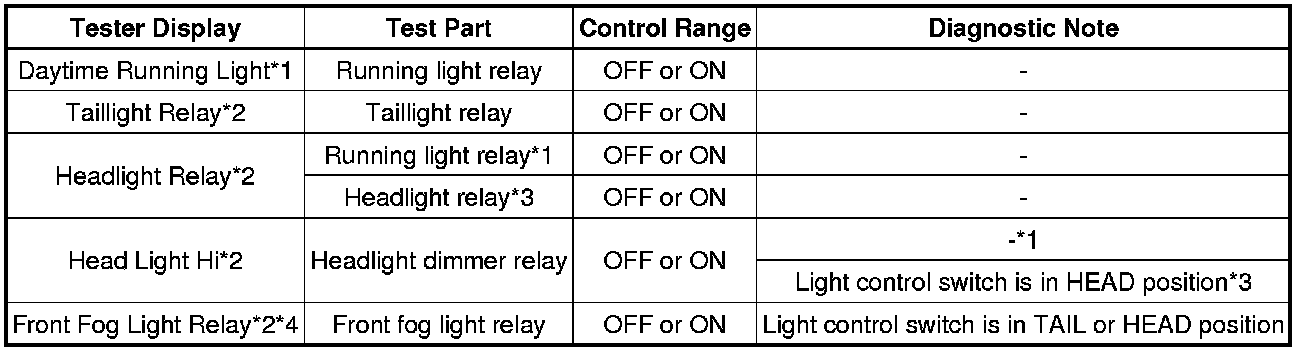 * *1: w/ Daytime Running Light System or w/ Theft Deterrent System