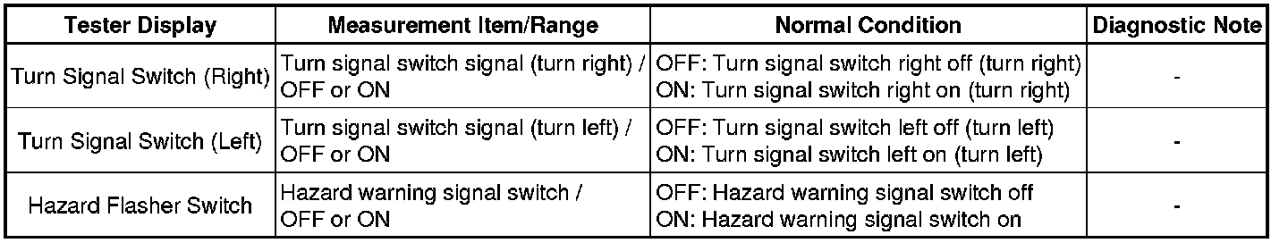 LIGHTING (EXT): LIGHTING SYSTEM (for Hatchback): DATA LIST / ACTIVE TEST
