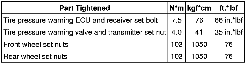 SPECIFICATIONS: TIRE PRESSURE MONITORING (for Hatchback): TORQUE SPECIFICATIONS