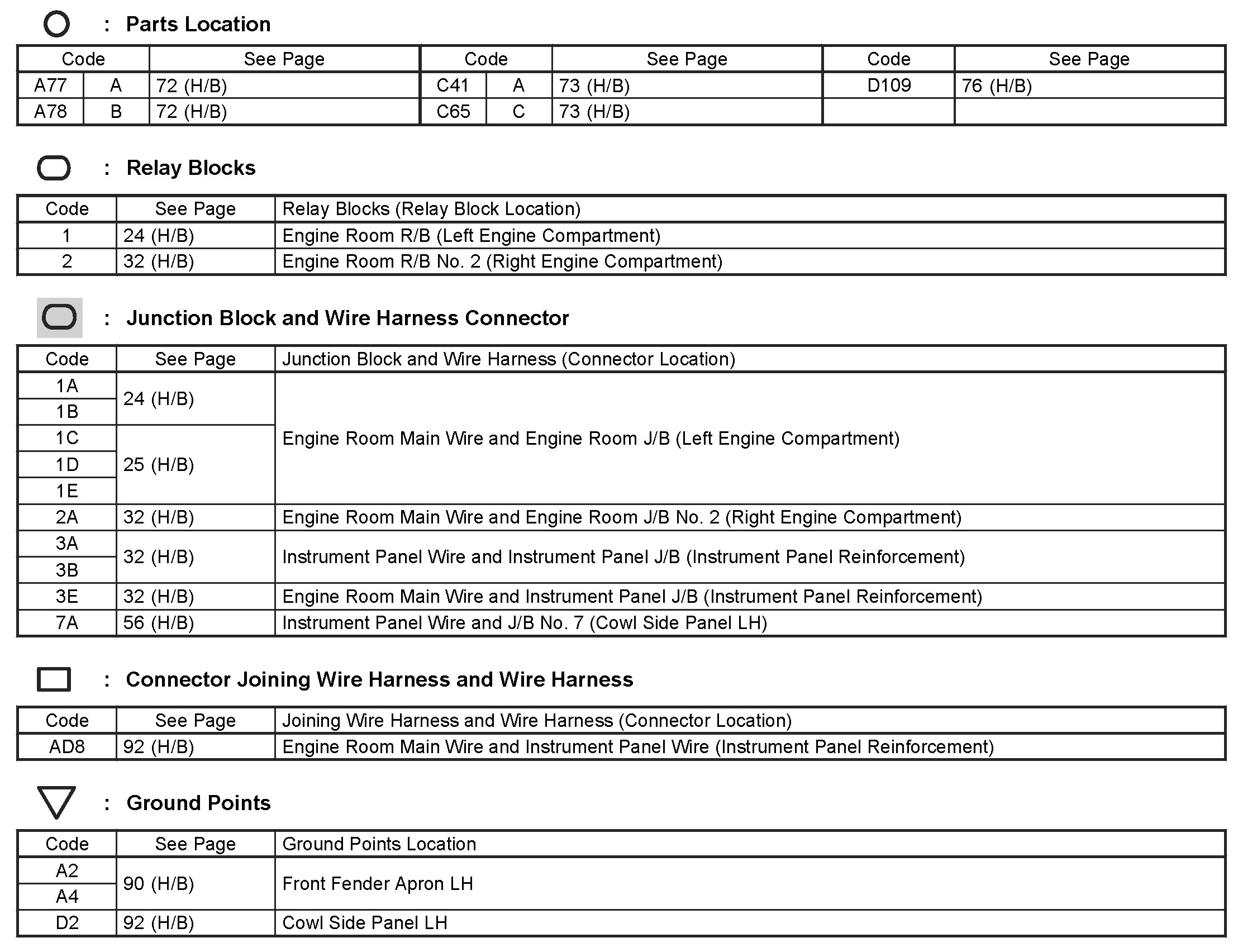 Locations: The locations of components, connectors, ground points, and splices referred to within these diagrams can be found at Vehicle Locations. Locations