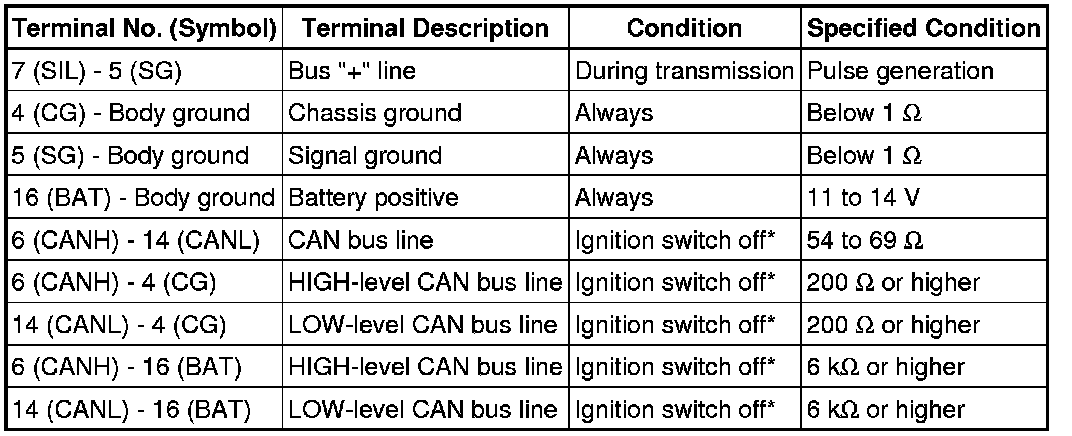 *: Before measuring the resistance, leave the vehicle as is for at least 1 minute and do not operate the ignition switch, any other switches, or the doors.