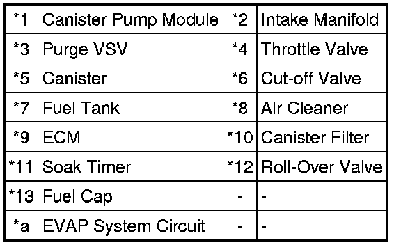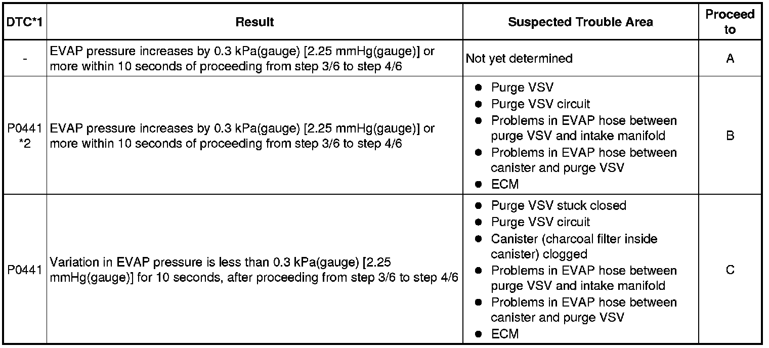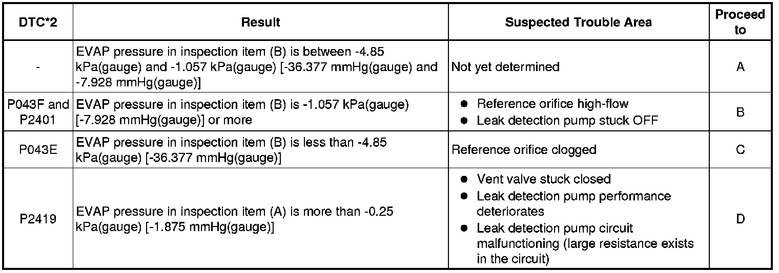 * *2: This result suggests that due to purge line blockage or purge VSV malfunction, the DTC was stored by the purge flow monitor while the engine was running, or that key-off monitor test result were nearly borderline values.