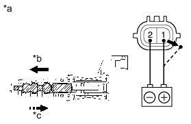 (1) Connect the positive (+) lead from a battery to terminal 1 and the negative (-) lead to terminal 2, and check the movement of the valve.