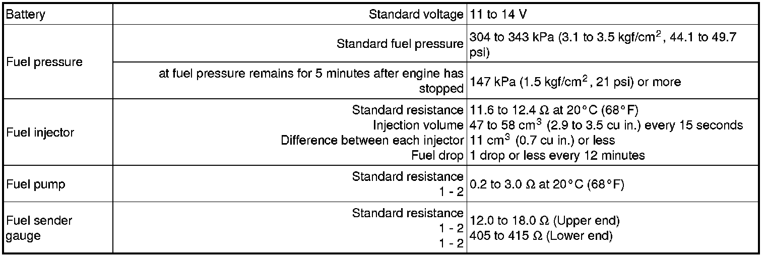 SPECIFICATIONS: 1NZ-FE FUEL (for Hatchback): SERVICE DATA