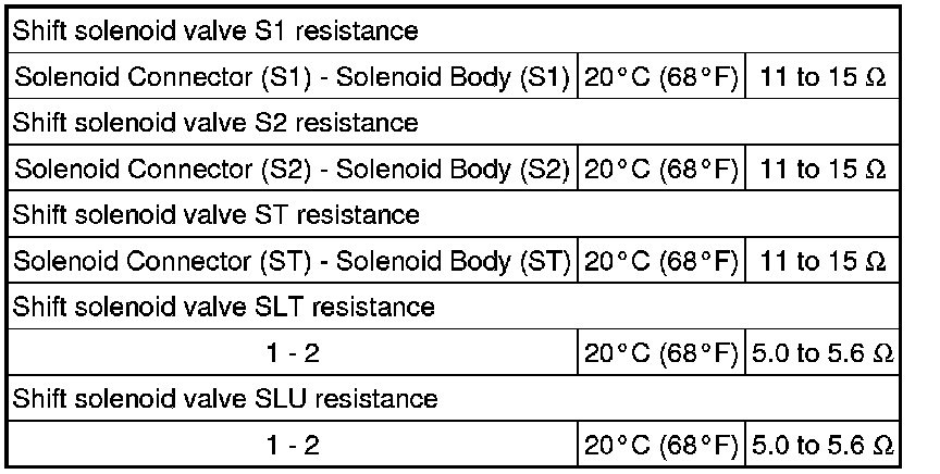 SPECIFICATIONS: U340E AUTOMATIC TRANSMISSION / TRANSAXLE (for Hatchback): SERVICE DATA