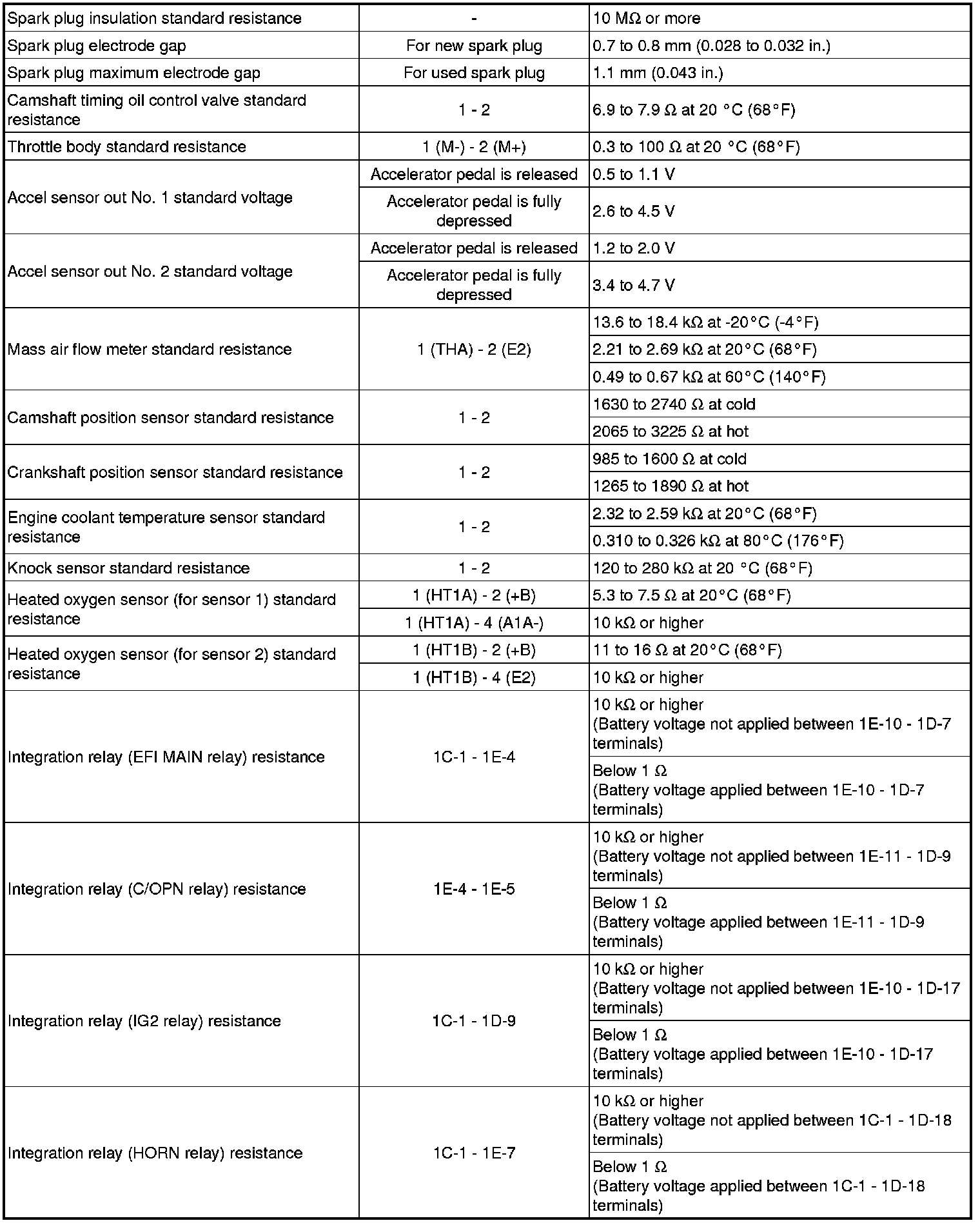 SPECIFICATIONS: 1NZ-FE ENGINE CONTROL (for Hatchback): SERVICE DATA