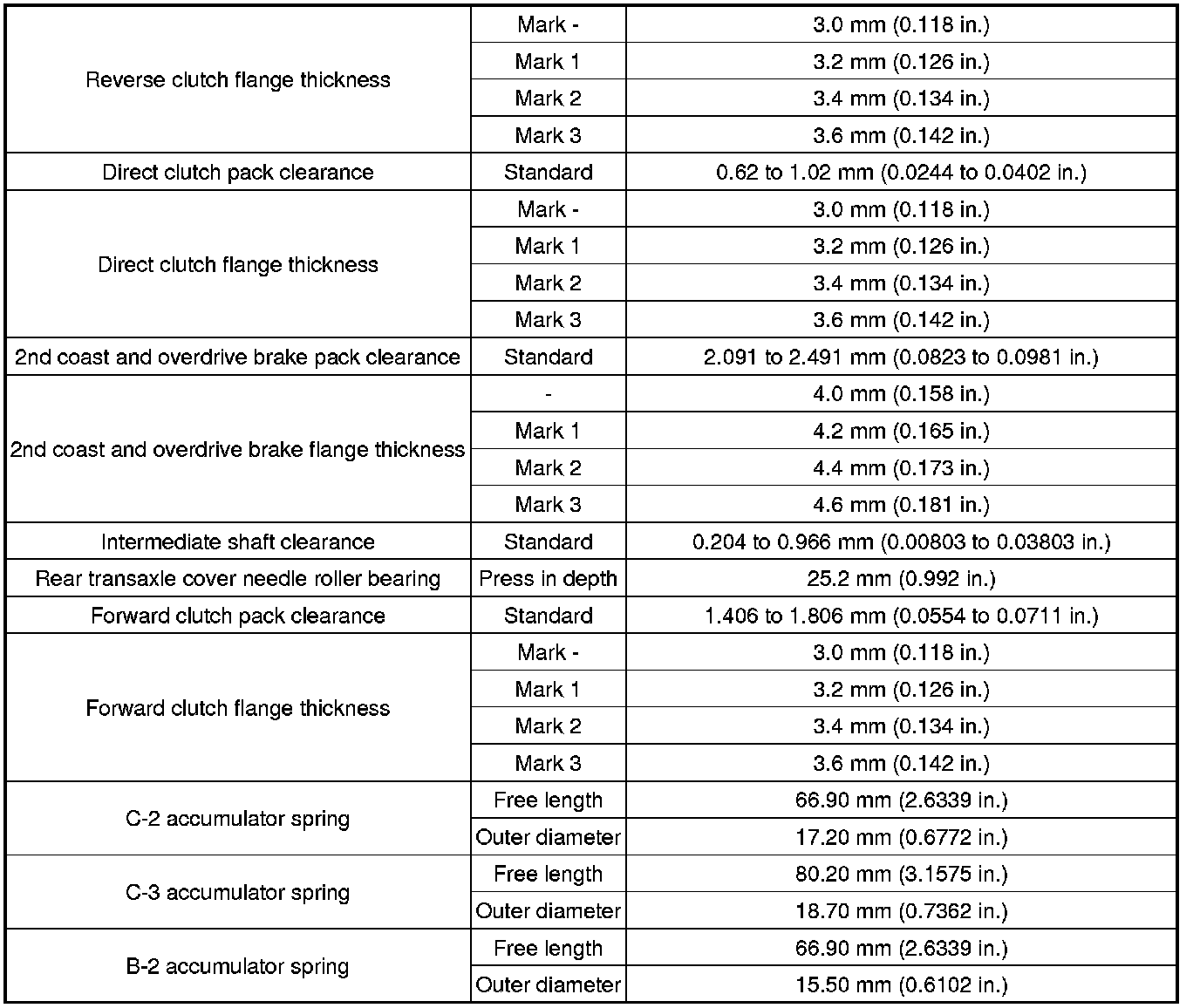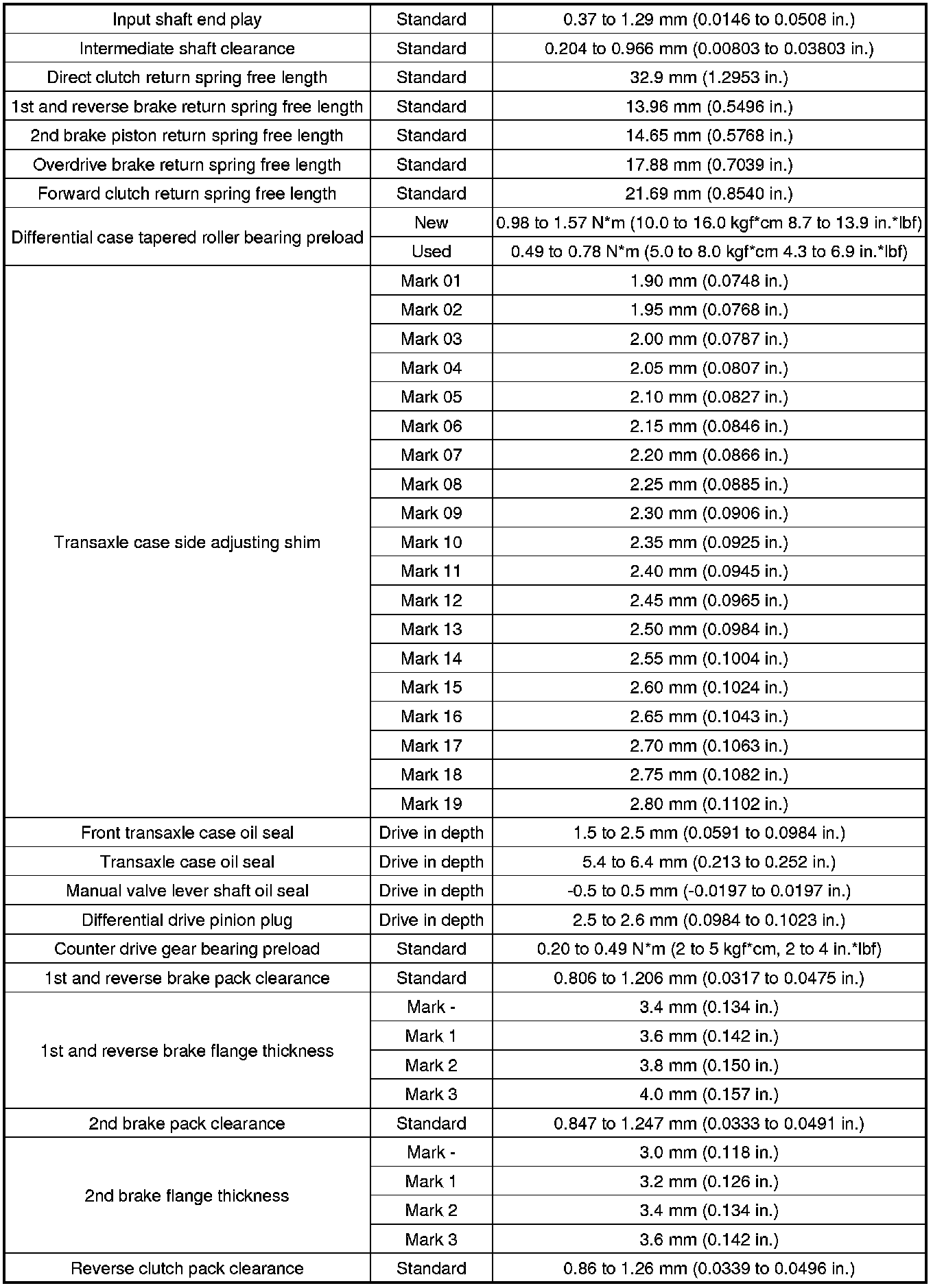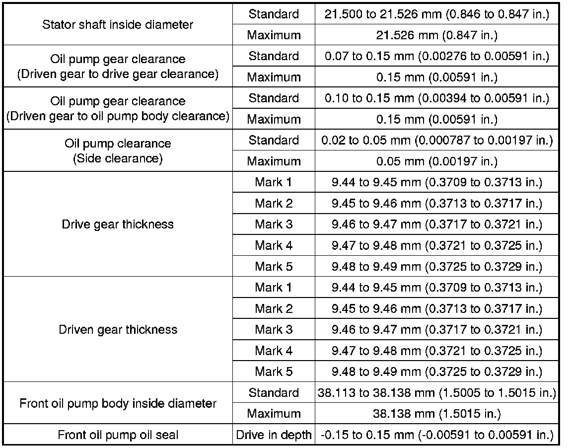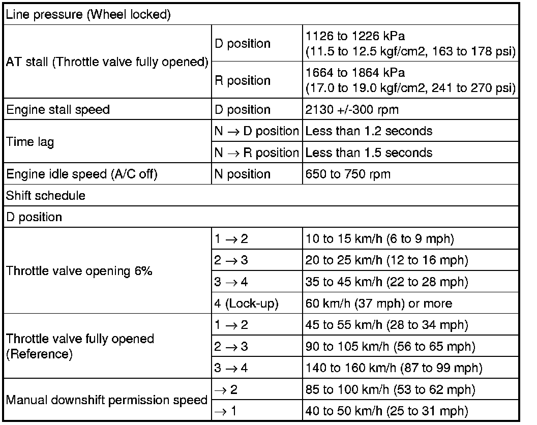 SPECIFICATIONS: U340E AUTOMATIC TRANSMISSION / TRANSAXLE (for Hatchback): SERVICE DATA