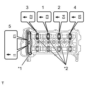 No. 2 Camshaft bearing cap - Torque 13 Nm (129 kgf-cm, 9 ft-lbf)