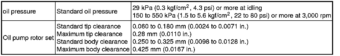SPECIFICATIONS: 1NZ-FE LUBRICATION (for Hatchback): SERVICE DATA