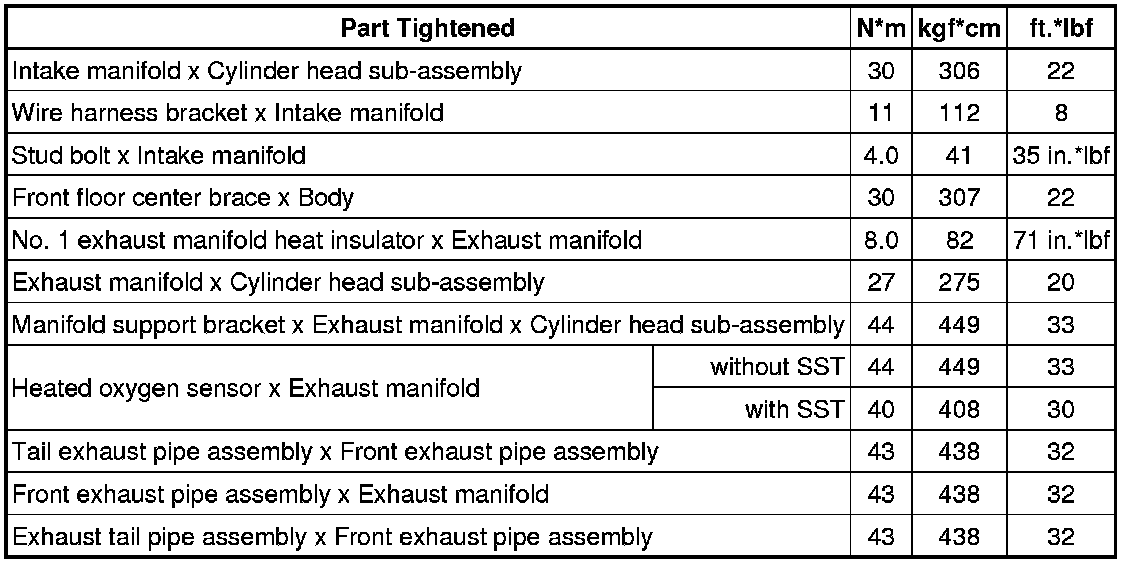 SPECIFICATIONS: 1NZ-FE INTAKE / EXHAUST (for Hatchback): TORQUE SPECIFICATIONS